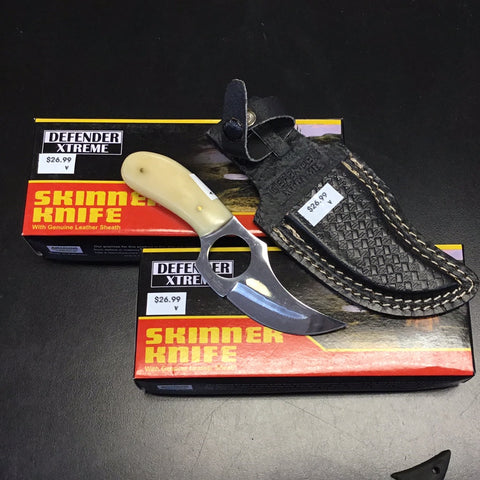 Defender-Xtreme 6" Skinner Knife With Bone Handle & Leather Sheath