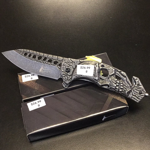 TheBoneEdge 8.5" Steel Handle Stone Wash Blade Spring Assisted Folding Knife - $26.99 USD