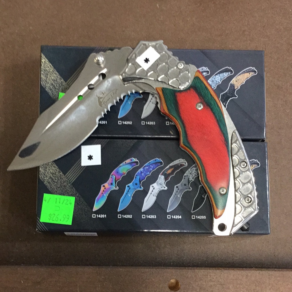 4.75" S/A F/K All Bulk Finished Blade Multi-Color Pakkawood Handle