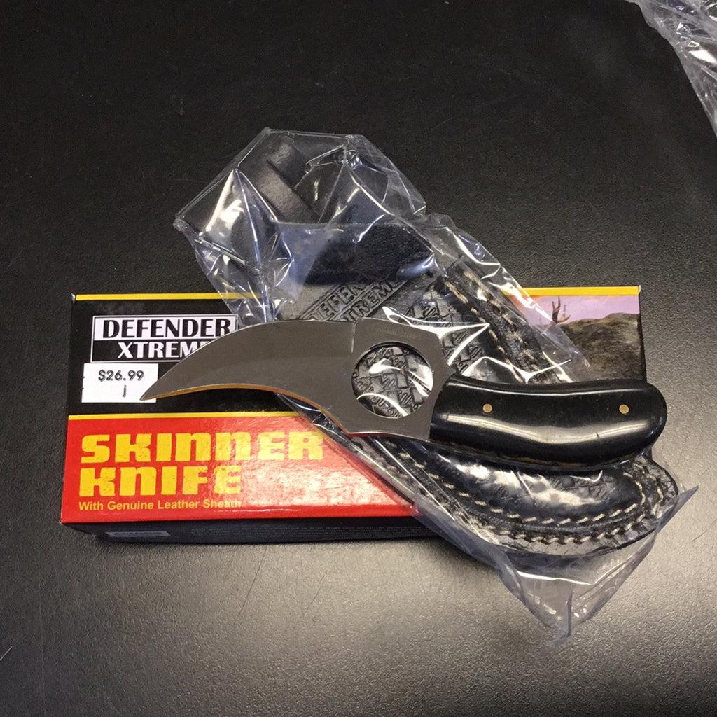 Defender-Xtreme 6" Skinner Knife With Black Wood Handle & Leather Sheath - Sold Out