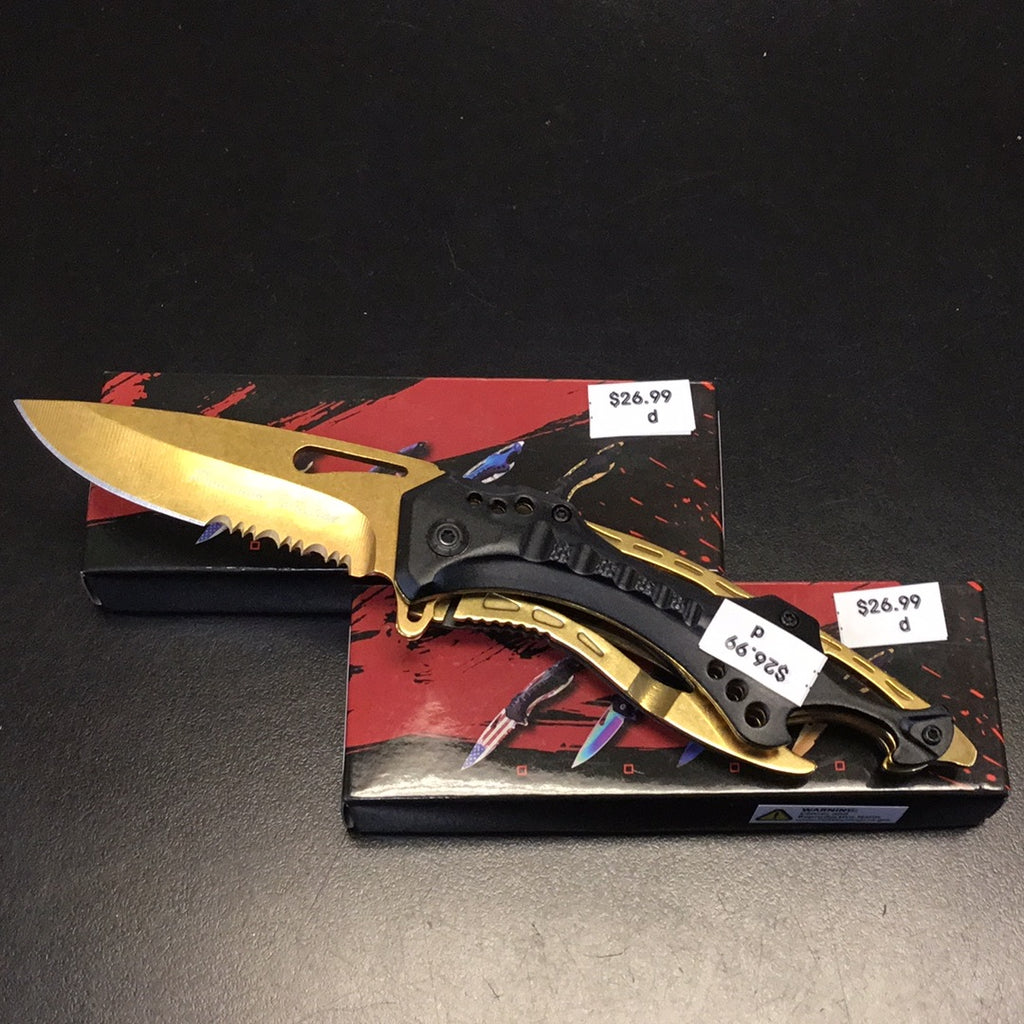 8" Premium Collection Spring Assisted Folding Knife Golden Coated Blade - $26.99 USD